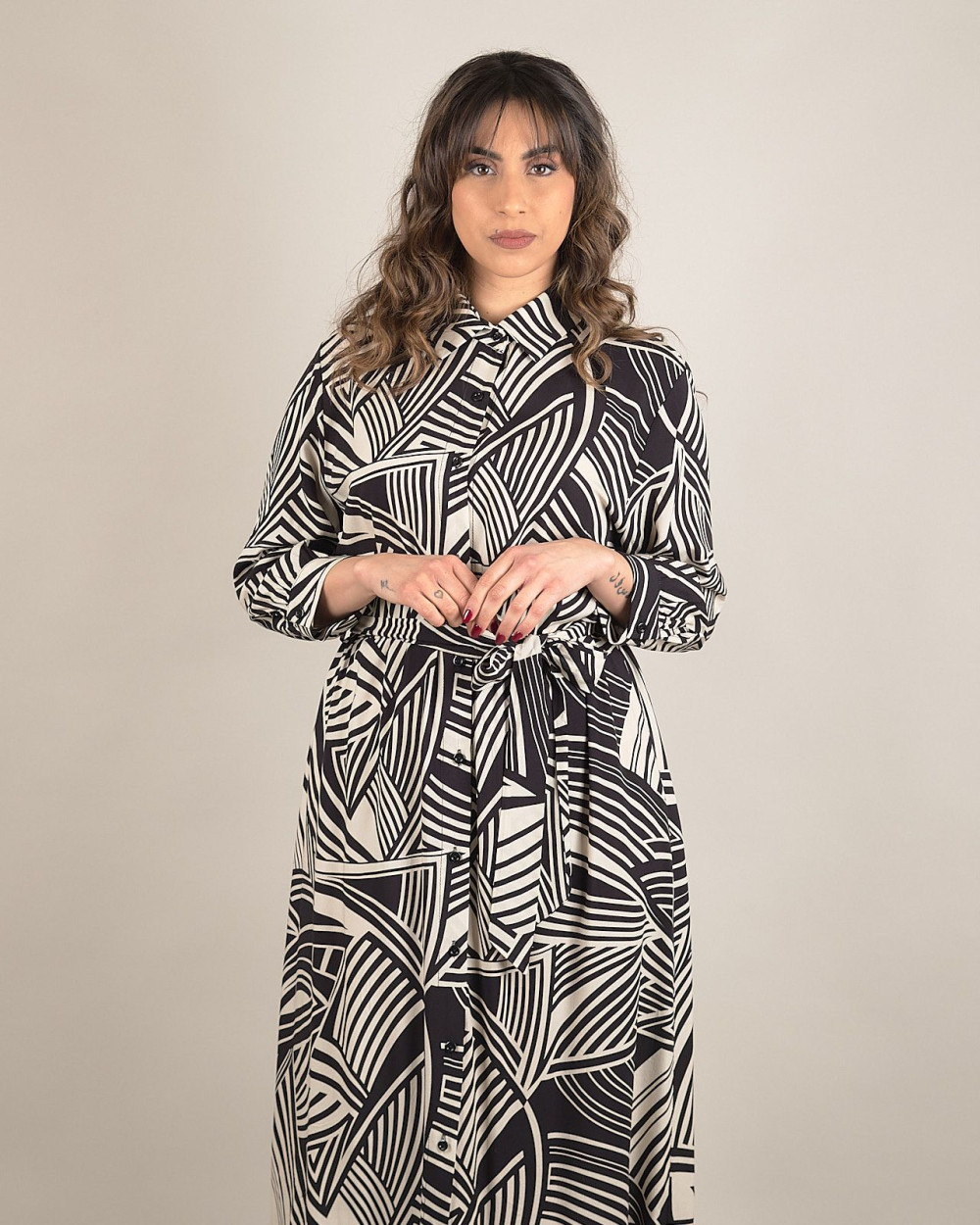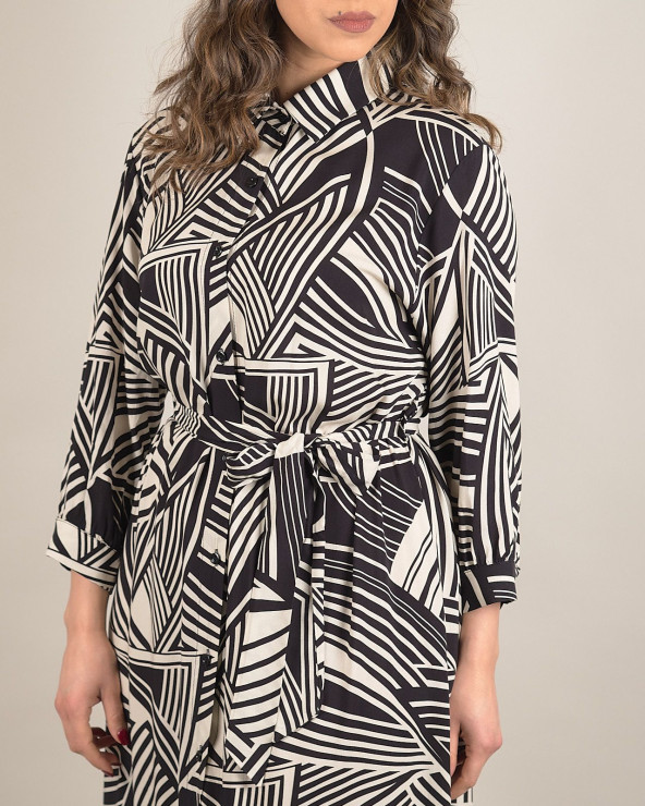 Abito midi in fantasia tribale con cintura