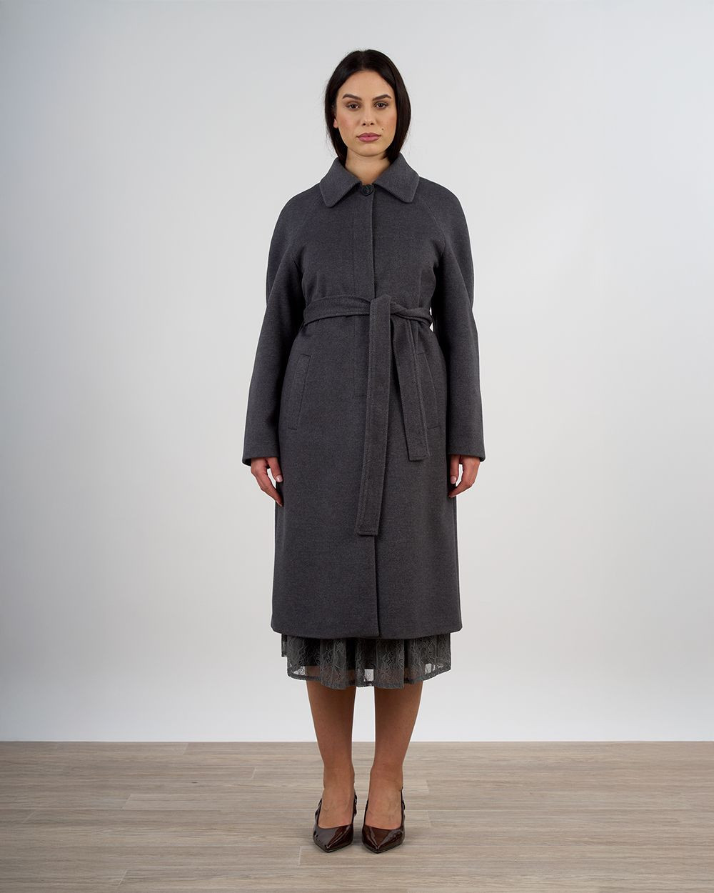 Cappotto lungo con linea dritta e cintura in vita, ideale per un look sofisticato e senza tempo.
