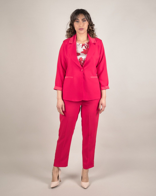 Elegante e decisa, questa giacca rossa è l’alleata perfetta per completare i tuoi outfit con carattere. Il design pulito è valorizzato da profili in raso tono su tono che donano luminosità e un tocco di raffinatezza. Il taglio morbido segue le forme con naturalezza, mentre le maniche a 3/4 con risvolto e la chiusura monopetto con bottone la rendono comoda e versatile. Ideale da indossare con pantaloni coordinati per un completo grintoso o con capi neutri per far risaltare il colore vibrante.