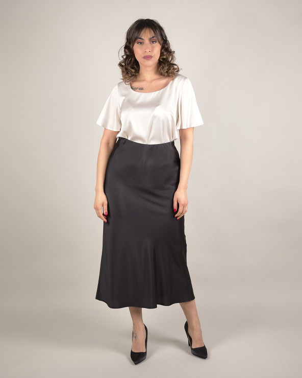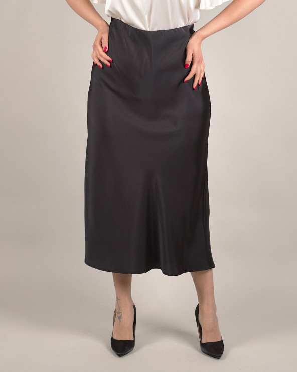 Gonna midi in raso con elastico in vita