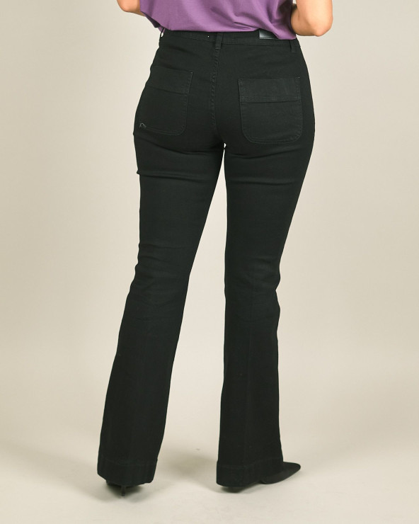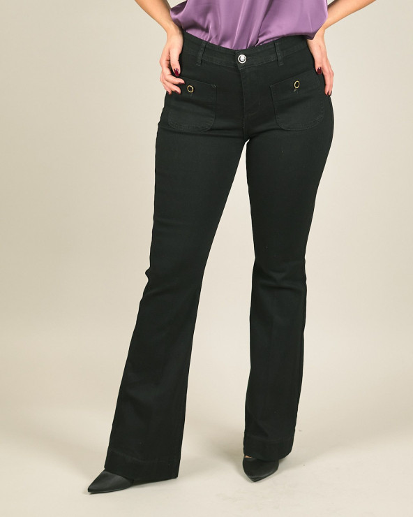 Jeans nero a zampa con tasche davanti