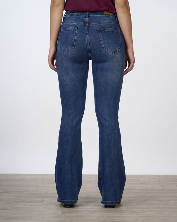 Questi jeans flare push-up in denim medio sono pensati per unire stile e funzionalità. Il taglio a zampa slancia la silhouette e dona un tocco raffinato e contemporaneo, mentre l’effetto push-up valorizza le forme con naturalezza, offrendo una vestibilità perfetta. La vita alta avvolge il punto vita, modellando con eleganza e garantendo comfort per tutta la giornata.