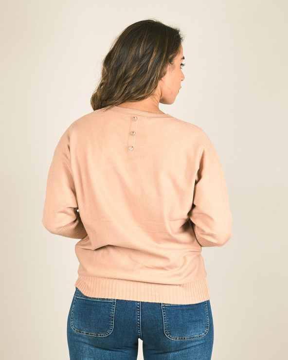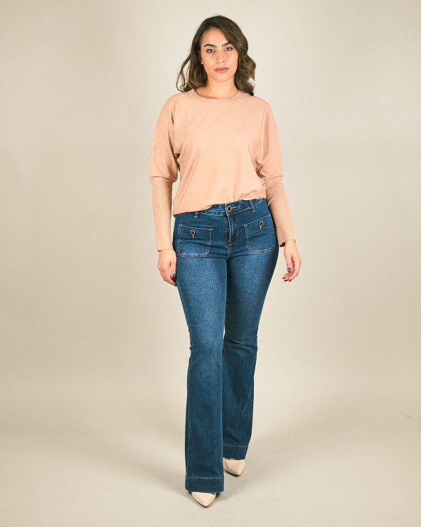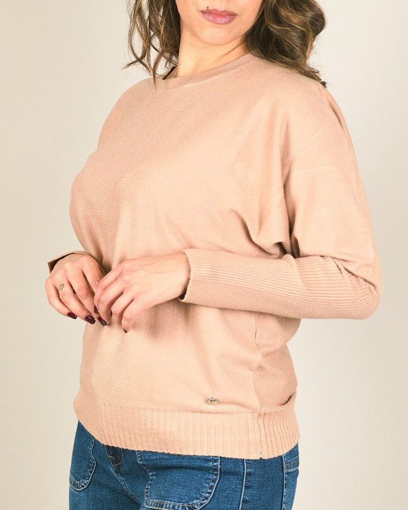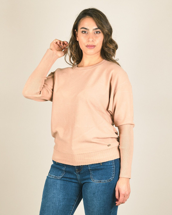 Maglia girocollo con manica a costine