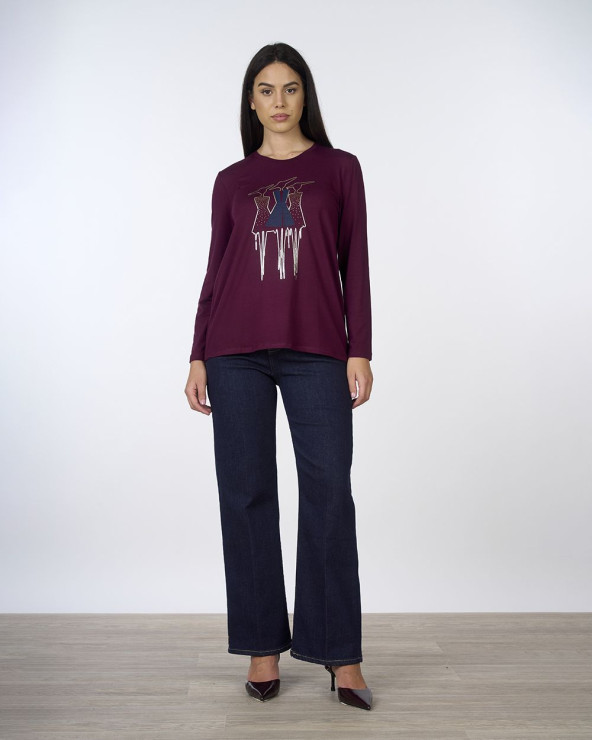Il fronte è arricchito da una stampa stilizzata con dettagli luminosi che aggiungono un tocco di originalità e carattere al modello, rendendolo perfetto per chi ama distinguersi con discrezione. Il girocollo classico e le linee pulite la rendono facile da abbinare: con un jeans è ideale per il tempo libero, mentre con pantaloni dal taglio sartoriale diventa un’opzione smart casual adatta anche al lavoro o ad appuntamenti informali.