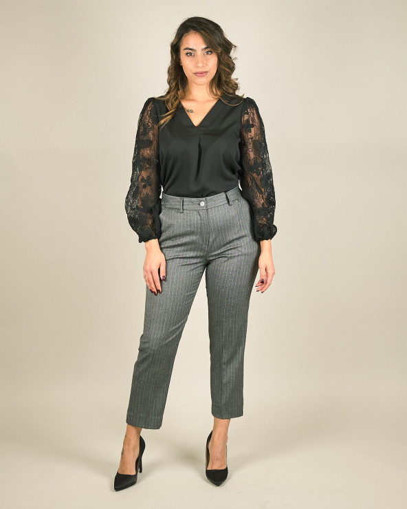 Pantaloni capri in fresco lana spigato