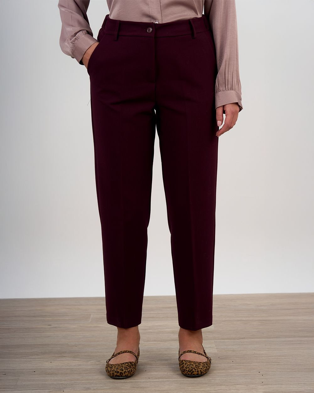 I pantaloni dritti color vino sono un capo elegante e versatile, ideale per creare look sofisticati e contemporanei. Realizzati in un tessuto morbido e strutturato, composto da poliestere, viscosa ed elastan, assicurano una vestibilità comoda e impeccabile per la donna curvy.