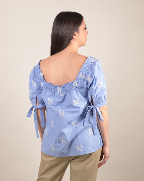 Blusa con scollo quadrato e ricami