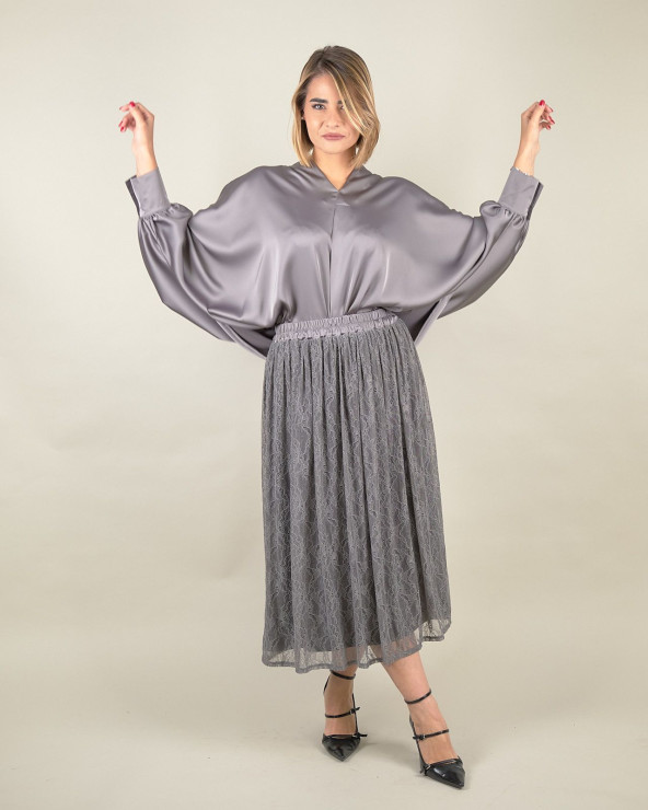 Blusa in raso con maniche a pipistrello