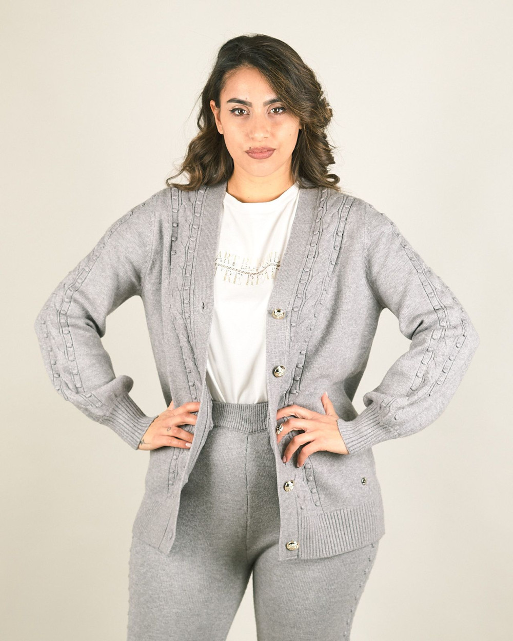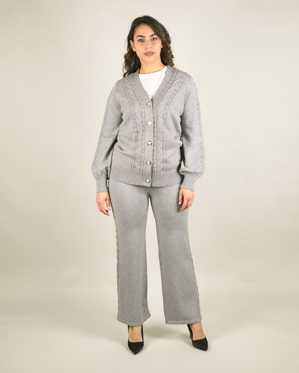 Cardigan in trama intrecciata con scollo a V