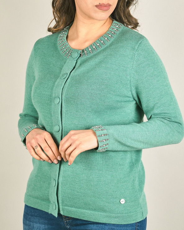Cardigan con applicazioni su scollo e polsi