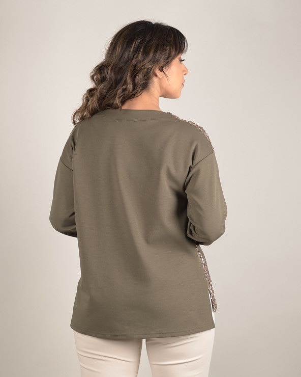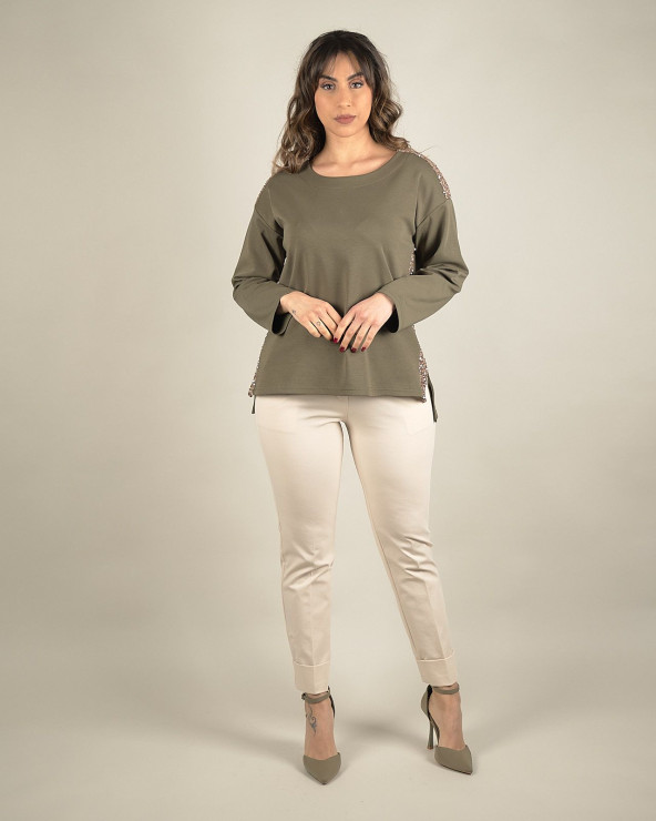 Maglia verde con dettagli in paillettes