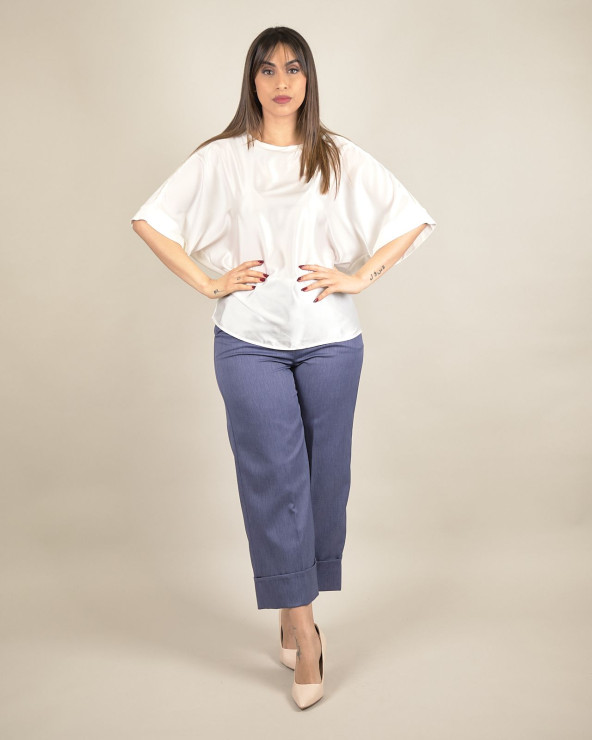 T-shirt over in raso con maniche ampie e dettaglio