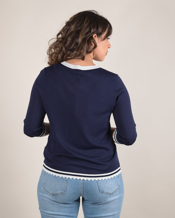 Elegante e raffinato, questo cardigan con bordi a contrasto è un capo versatile da abbinare ai tuoi outfit quotidiani. Realizzato in morbida viscosa ed elastan, garantisce comfort e vestibilità perfetta. I dettagli a contrasto con finiture ondulate aggiungono un tocco di stile e originalità, rendendolo ideale sia per look casual che più ricercati. Perfetto da indossare sopra camicie o top per un effetto chic e femminile.