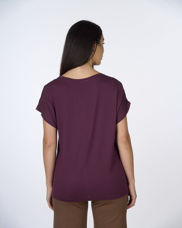 Questa t-shirt bimaterica combina con eleganza il fronte in raso lucido e il retro in morbido jersey, creando un capo raffinato ma pratico da indossare ogni giorno. Il tessuto satinato regala luminosità e un effetto seta che valorizza il look, mentre il jersey assicura comfort e vestibilità naturale.