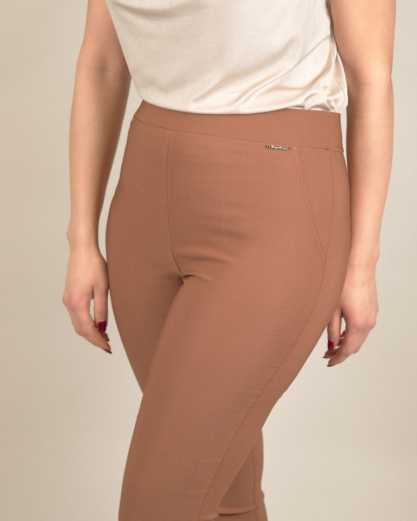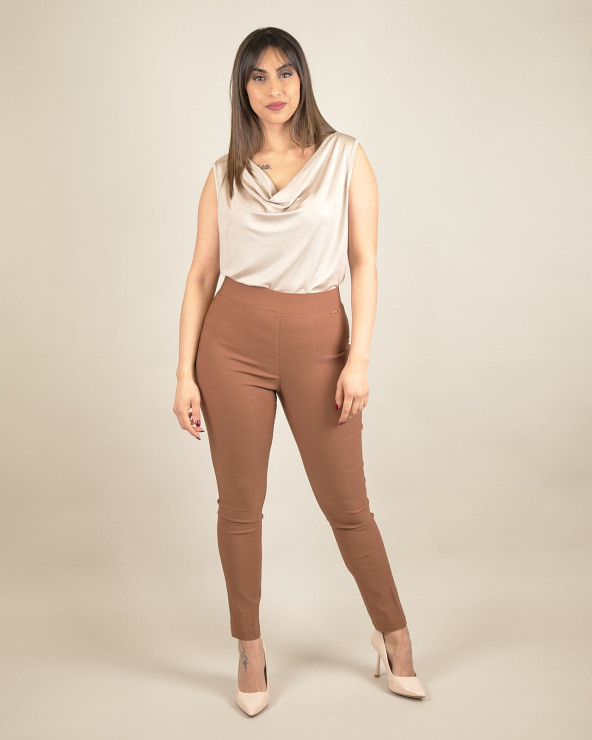 Questi pantaleggins in tessuto stretch uniscono eleganza e comfort in un capo versatile e alla moda. Il design aderente valorizza la silhouette, mentre la vita alta elasticizzata garantisce una vestibilità perfetta e una sensazione di leggerezza. Il tessuto elasticizzato permette un’ottima libertà di movimento, rendendoli ideali per ogni occasione, dal lavoro al tempo libero. Perfetti da abbinare con una camicia per un look più formale o con una maglia oversize per un outfit casual-chic.