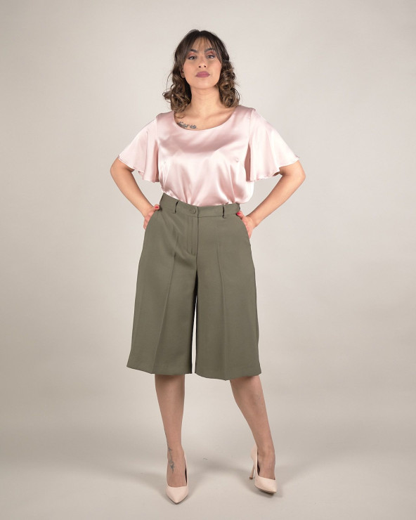 Bermuda eleganti in viscosa verde oliva