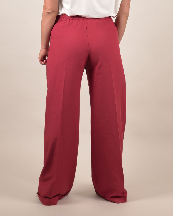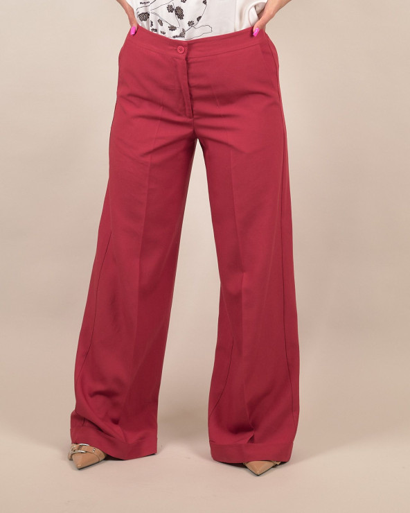 Pantaloni palazzo tegola in lino e viscosa