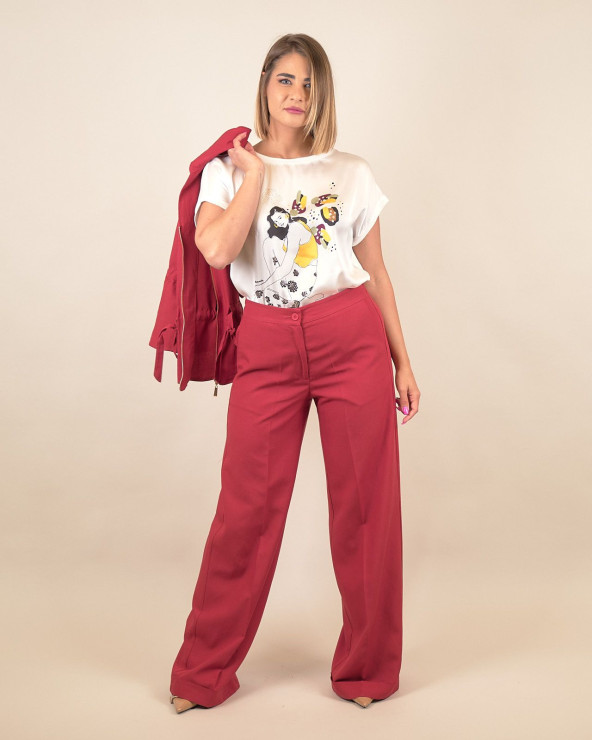 Aggiungi un tocco deciso e contemporaneo al tuo guardaroba con questi pantaloni palazzo in lino e viscosa. La linea ampia e fluida valorizza la silhouette con eleganza, offrendo al tempo stesso massimo comfort grazie alla leggerezza del tessuto. Il taglio a vita alta e la chiusura frontale donano una vestibilità impeccabile, mentre la tonalità tegola rende questo capo facilmente abbinabile a top neutri o stampe vivaci. Indossali con una camicia o una shariana coordinata per un completo sofisticato o con una t-shirt casual per uno stile rilassato.