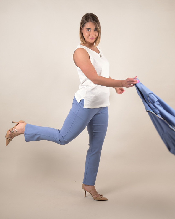 Perfetto per aggiungere un tocco sofisticato al tuo guardaroba, questo top in maglia cannettata è realizzato in un tessuto morbido e confortevole che si adatta armoniosamente alla figura. Il dettaglio gioiello applicato sullo scollo cattura la luce con discrezione, rendendo il capo ideale sia per outfit quotidiani curati che per occasioni più eleganti. Il taglio senza maniche e la lavorazione a costine esaltano la linea del busto, garantendo al tempo stesso comodità e stile. Indossalo con pantaloni a vita alta o con una gonna fluida per un look completo, raffinato e moderno.