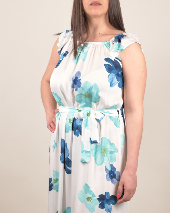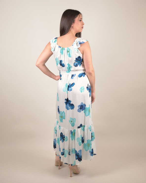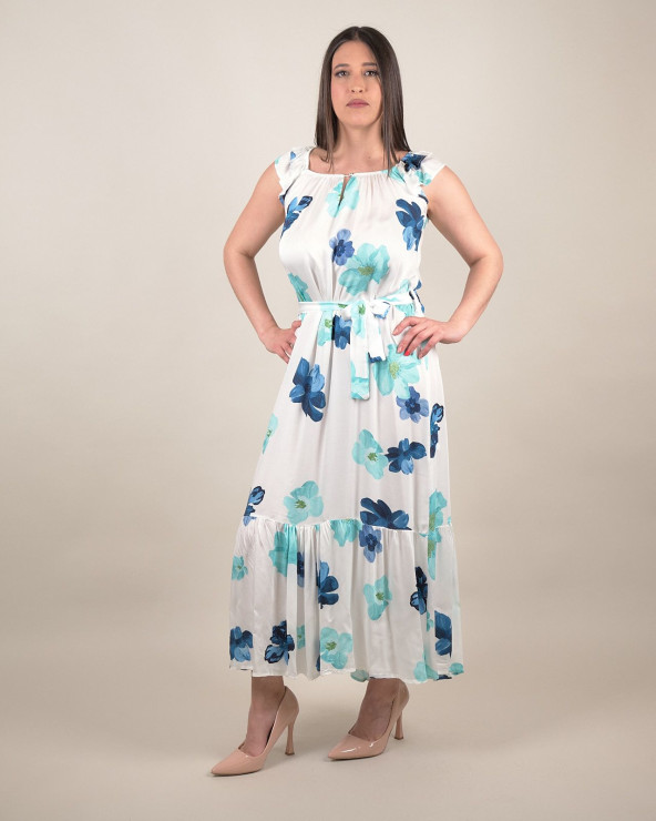 Leggero e raffinato, questo abito lungo in viscosa con stampa Ocean Flowers è perfetto per aggiungere un tocco di freschezza e colore al tuo stile estivo. Il design senza maniche con scollo arricciato e cintura coordinata esalta la femminilità, offrendo una vestibilità morbida e confortevole. Il tessuto fresco lo rende ideale per le giornate più calde, accompagnandoti con eleganza in ogni occasione. La fantasia floreale, ispirata ai toni vivaci dell’oceano, dona un effetto luminoso e sofisticato. Indossalo con sandali bassi per un look casual oppure con décolleté per un outfit più formale.