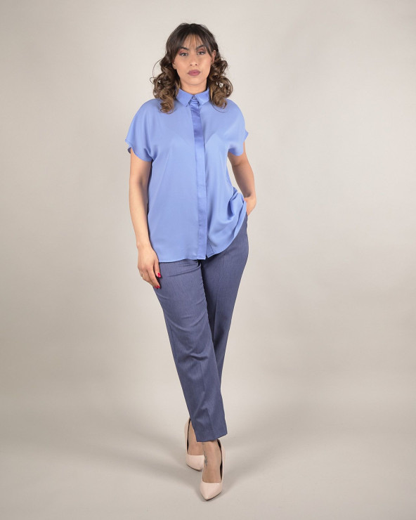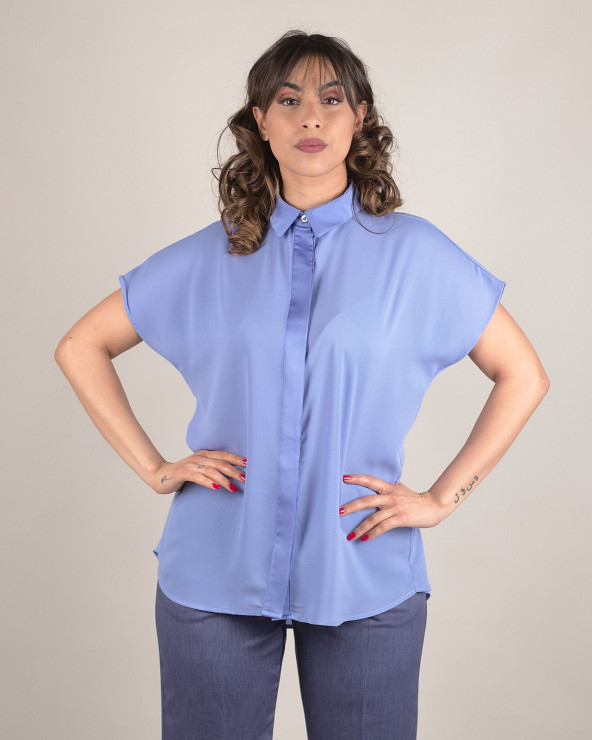 Elegante camicia realizzata in georgette e raso, ideale per un look raffinato e contemporaneo. Il tessuto fluido e leggero dona un effetto delicato e sofisticato, mentre il colletto e l’abbottonatura frontale in raso lucido creano un contrasto raffinato e moderno. Le maniche corte cadono morbide sulle spalle, garantendo comfort e versatilità in ogni occasione. Perfetta da abbinare sia con pantaloni eleganti che con capi più casual per un look chic e senza tempo.