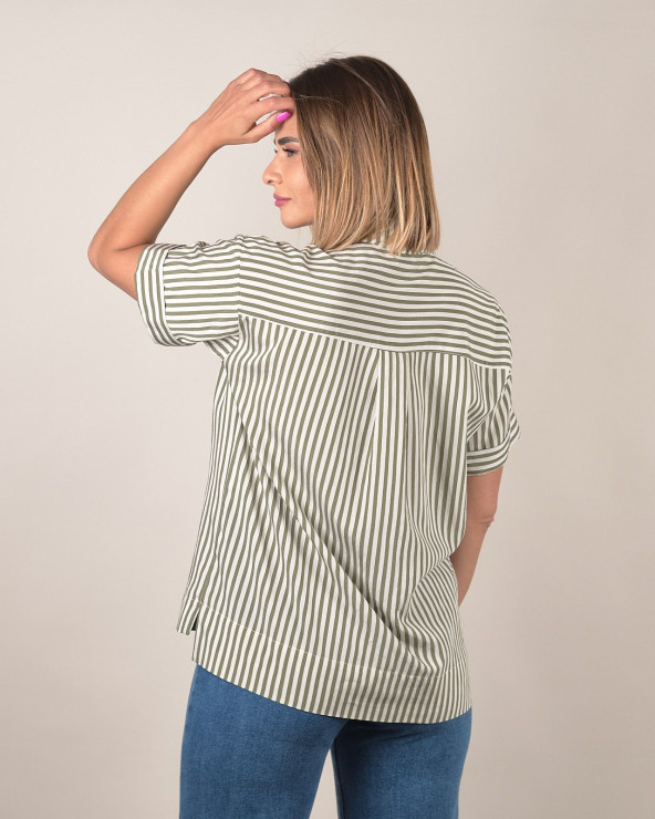 Camicia a righe verde militare