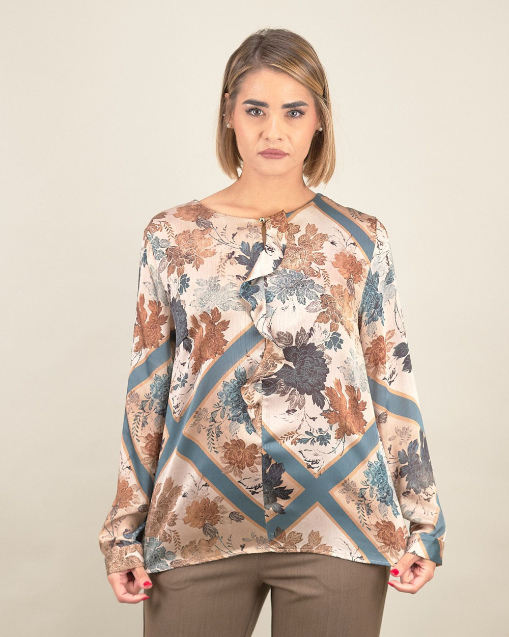 La blusa in fantasia Garden con volant è un capo elegante e femminile, perfetto per aggiungere un tocco sofisticato al look quotidiano. Realizzata in morbida viscosa elasticizzata, si distingue per la stampa delicata dai toni naturali e per il dettaglio del volant frontale che valorizza la silhouette con un movimento fluido e raffinato.
