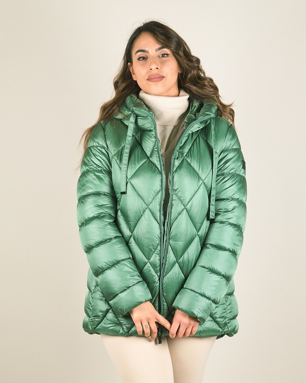 Piumino corto trapuntato con cappuccio