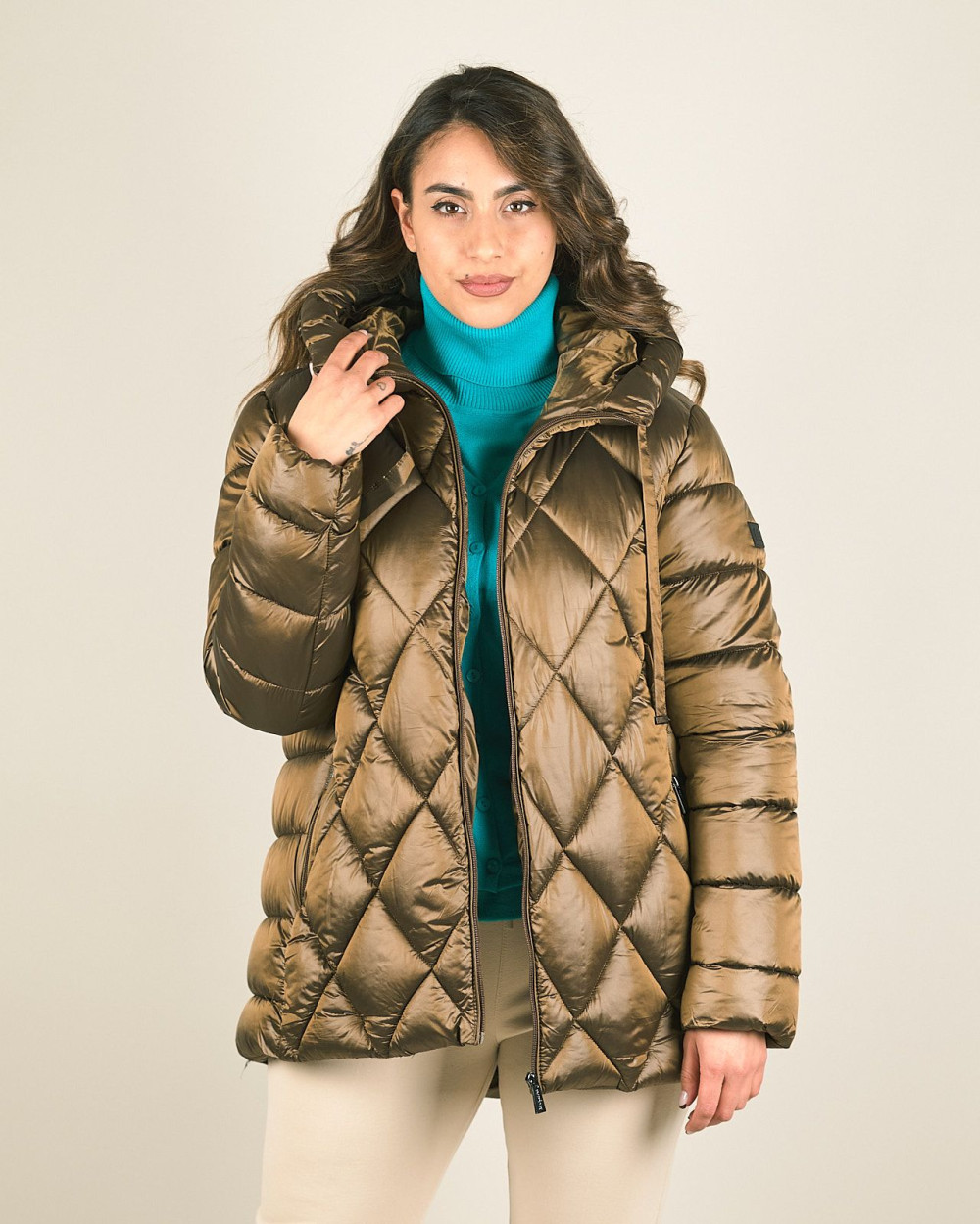 Piumino corto trapuntato con cappuccio