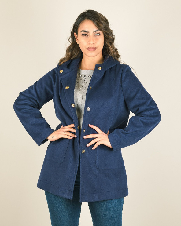 Cappotto con bottoni automatici e cappuccio