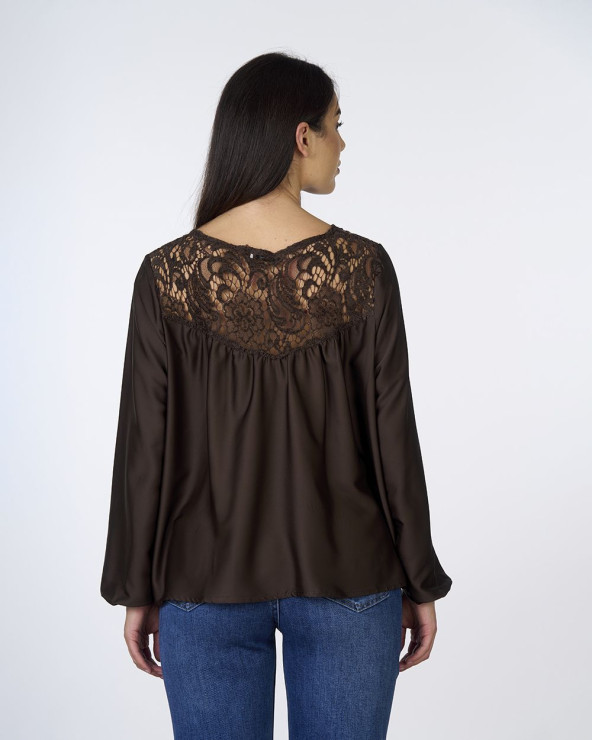 Questa blusa in raso con inserto in pizzo unisce eleganza e femminilità, rendendola un capo ideale per creare look raffinati e ricercati. Il tessuto fluido e luminoso scivola delicatamente sulla silhouette, mentre il dettaglio in pizzo sullo scollo e sul carré aggiunge un tocco di sensualità e sofisticatezza, esaltando la femminilità con classe.