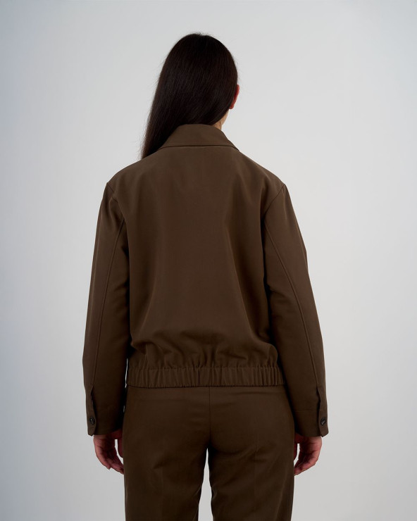 Il modello presenta colletto classico, chiusura frontale con zip nascosta e due pratiche tasche applicate. Le maniche lunghe con bottone al polso aggiungono un dettaglio raffinato, mantenendo però un carattere casual e contemporaneo.