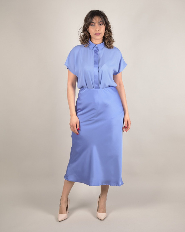 Gonna midi in raso con elastico in vita