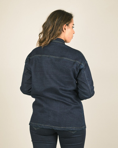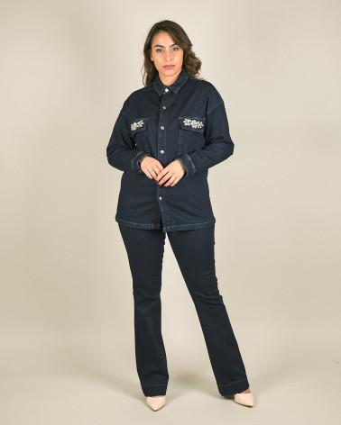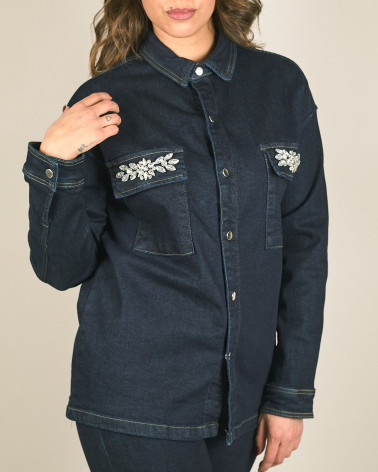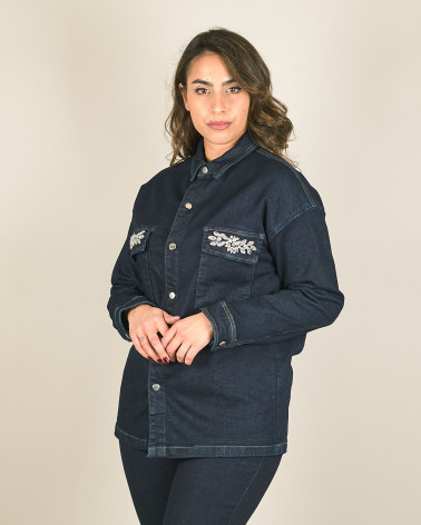 Camicia giacca in denim scuro con gioiello