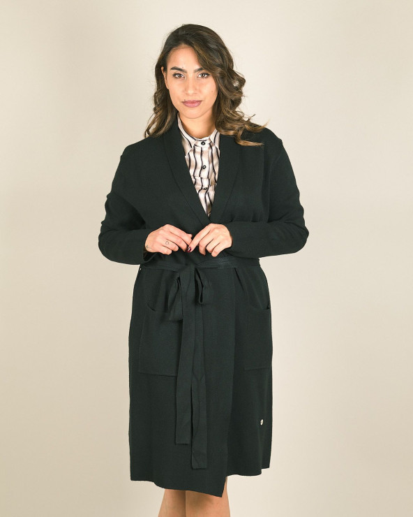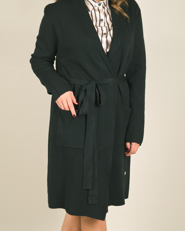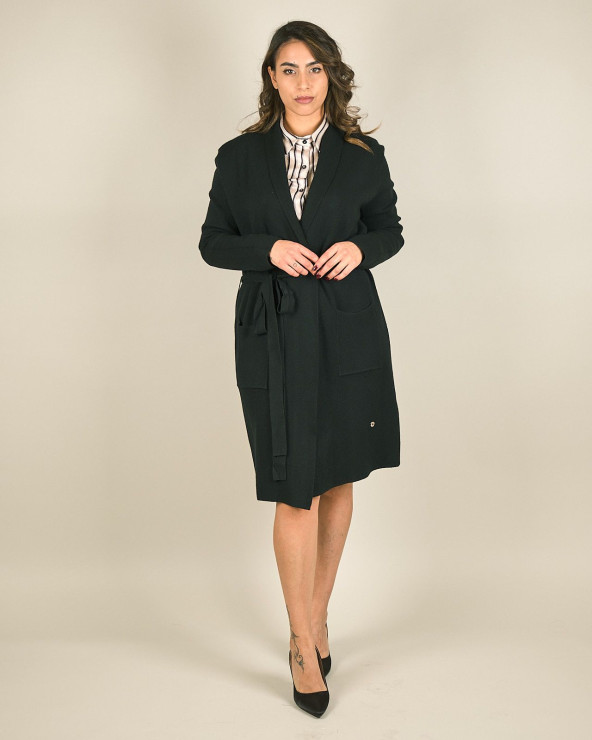 Spolverino lungo in maglia con cintura e tasche