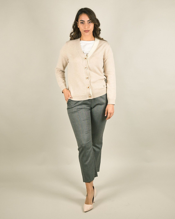 Cardigan scollo a V con profilo a contrasto