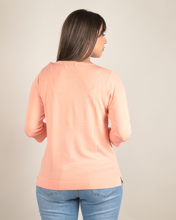 Maglia girocollo in filo dal design essenziale e raffinato, perfetta per ogni occasione. Il tessuto in misto viscosa assicura una vestibilità morbida e confortevole, avvolgendo delicatamente la silhouette. Le maniche a tre quarti con piccolo dettaglio sul polsino aggiungono un tocco di eleganza discreta. Ideale per essere abbinata a jeans per un look casual oppure a pantaloni sartoriali per un outfit più sofisticato. Un capo versatile che non può mancare nel guardaroba.