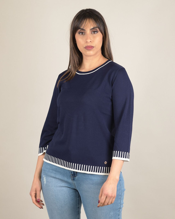 Maglia in filo con dettagli a righe a contrasto
