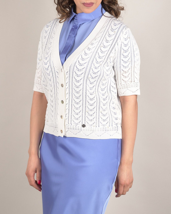 Cardigan traforato con scollo a V e perle