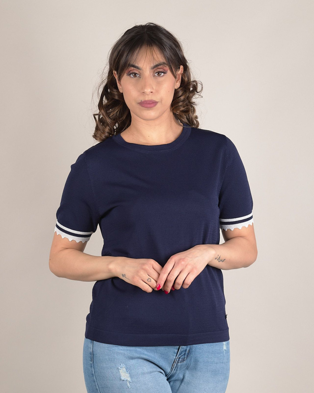 Maglia in filo con bordi a contrasto