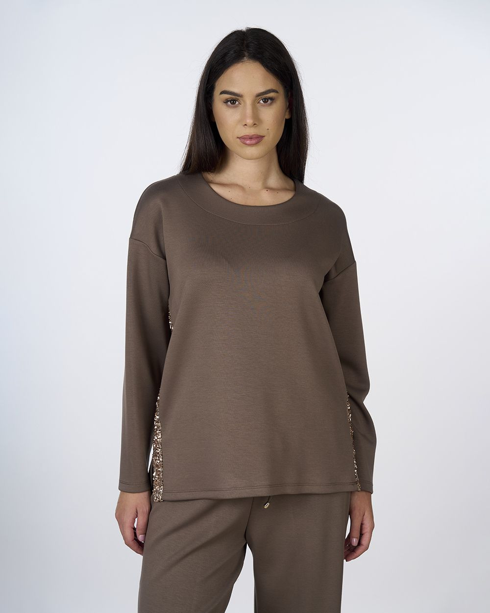 Felpa fango con paillettes laterali