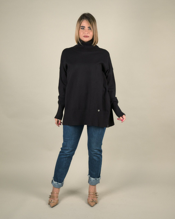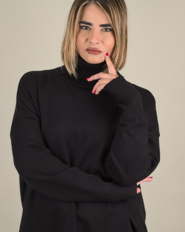 Il design oversize con spacchetti laterali e bordo a costine dona un tocco moderno e rilassato, mentre il collo alto avvolgente garantisce calore e un’eleganza discreta. Ideale da indossare con jeans per un look casual o con pantaloni eleganti per uno stile più raffinato.