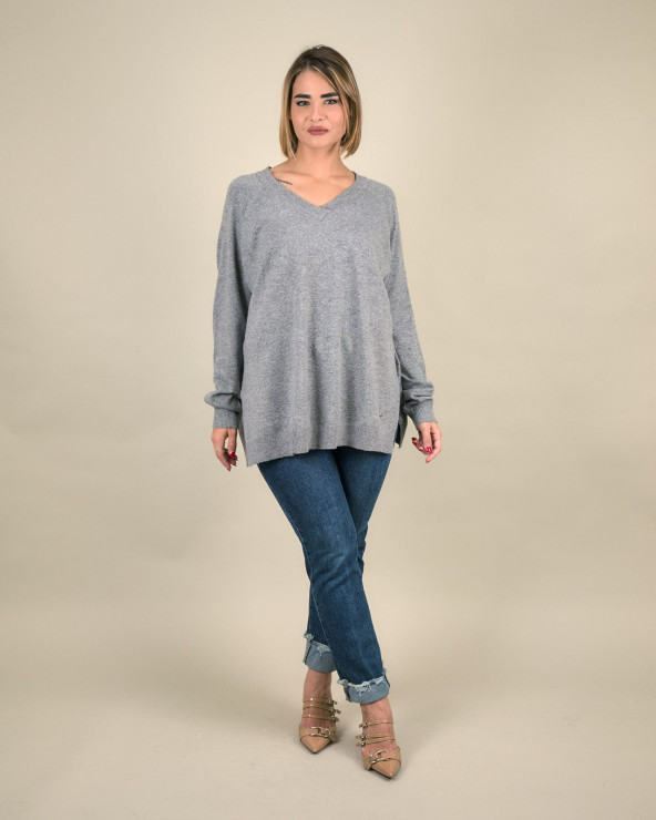 La maglia over con scollo a V è il capo perfetto per chi ama la comodità senza rinunciare allo stile. Realizzata in un morbido mix di viscosa, modal, lana ed elastan, garantisce una sensazione di calore e morbidezza sulla pelle, ideale per le giornate più fresche.