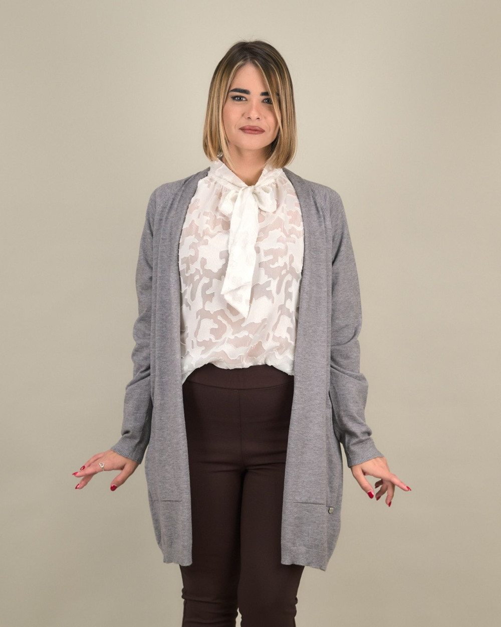 Il cardigan lungo in maglia viscosa è un capo versatile e intramontabile, perfetto per completare qualsiasi outfit con un tocco di eleganza casual. Realizzato in un morbido tessuto misto viscosa, modal ed elastomero, offre una vestibilità confortevole e leggera, ideale per ogni stagione.