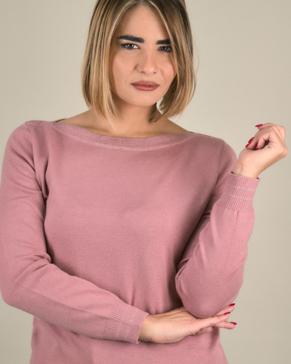 La maglia con scollo a barchetta e dettagli lurex è un capo elegante e femminile, perfetto per donare un tocco luminoso al tuo guardaroba quotidiano. Realizzata in un morbido tessuto misto viscosa, modal ed elastomero, assicura una vestibilità confortevole e una linea fluida che valorizza ogni forma.