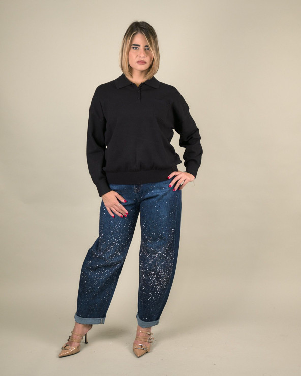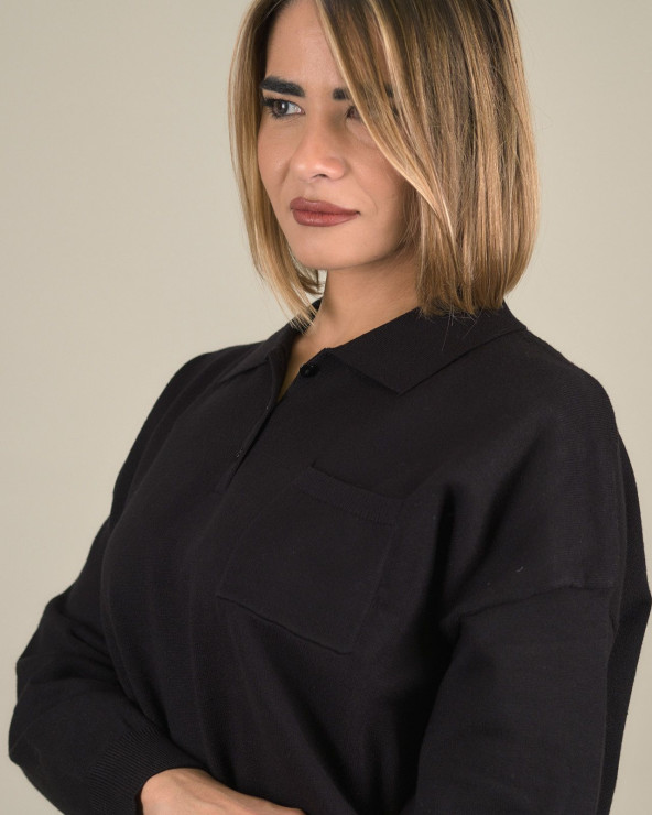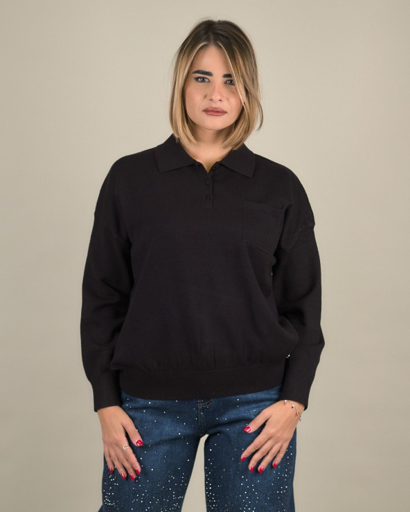 Maglia polo dal taglio morbido e femminile, caratterizzata da colletto classico, chiusura con bottoncini e pratico taschino sul petto.