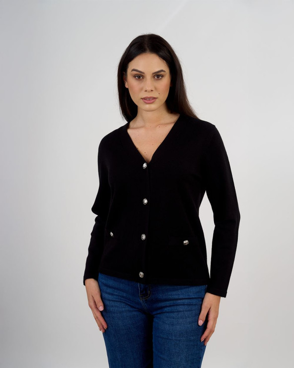 Cardigan scollo a V con bottoni gioiello