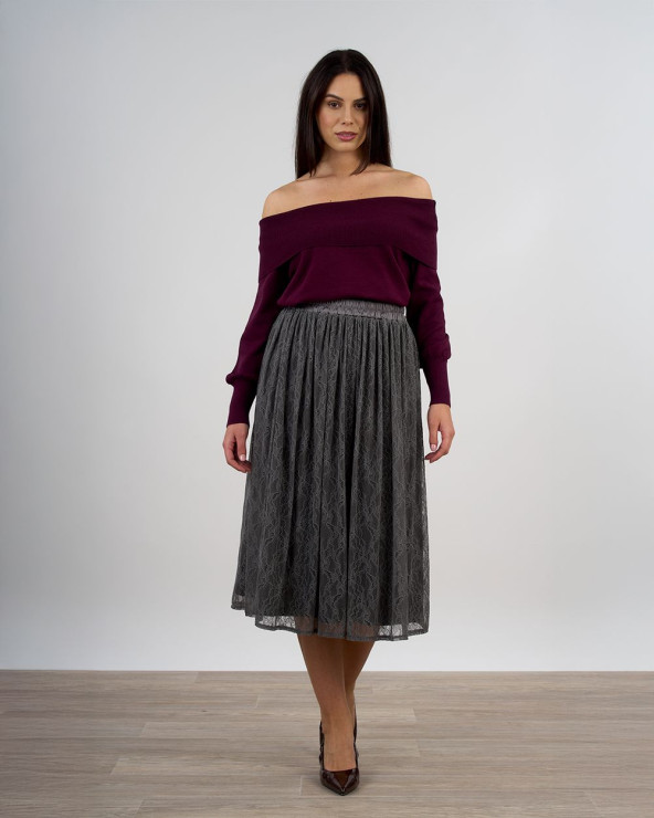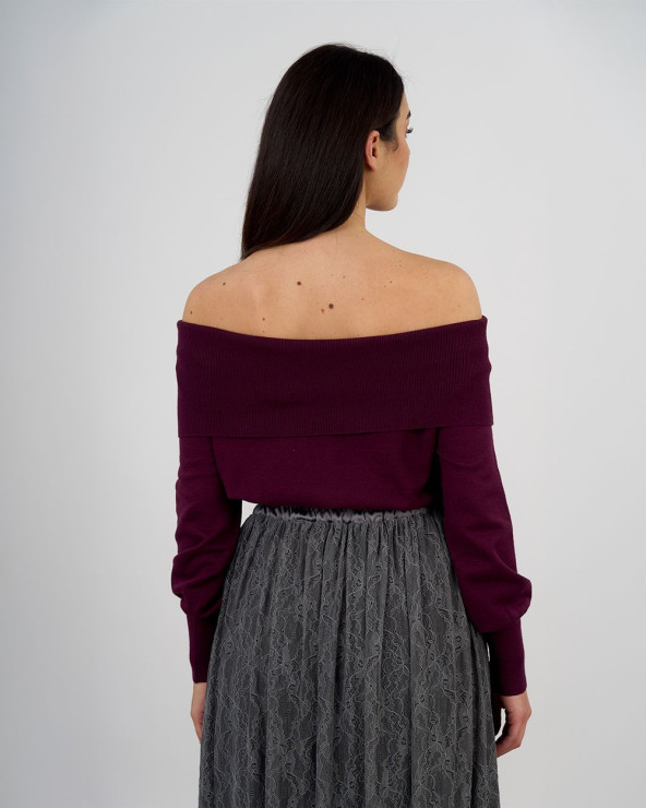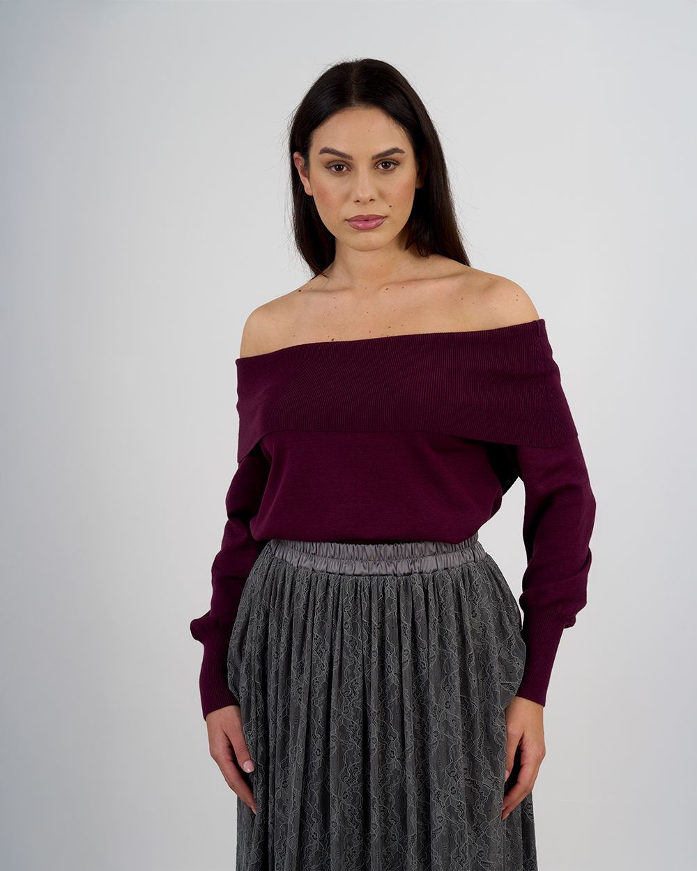 Maglia con ampio scollo a barca, un capo dal fascino femminile e raffinato che valorizza le spalle con eleganza.