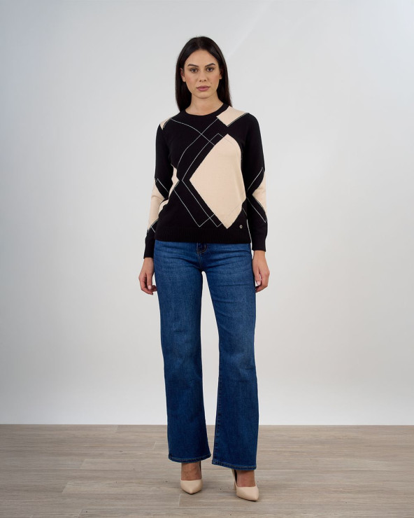 Il girocollo classico e i bordi a coste completano il capo con dettagli essenziali e raffinati, ideali per look versatili, dal casual chic all’elegante urbano.