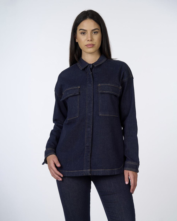 La camicia in denim scuro con tasche frontali è un capo versatile e dallo stile deciso, ideale per completare look casual e contemporanei. Il...